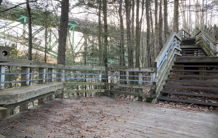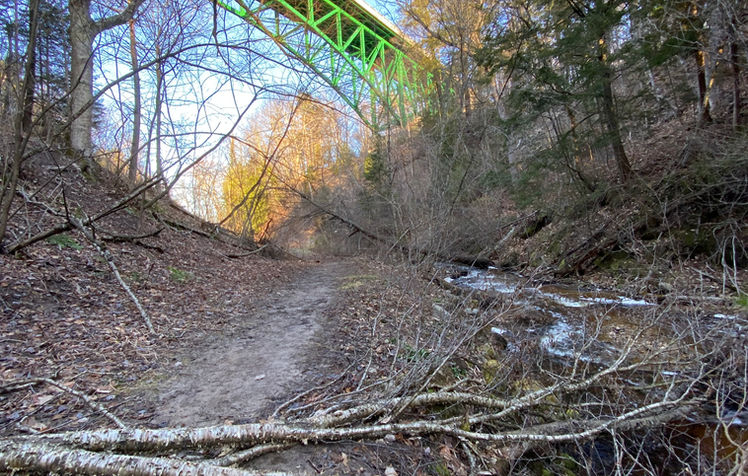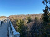 Located between Epoufette and Brevort, this cantilevered steel bridge is part of the US-2 route along Lake Michigan's shoreline. It suspends the road over a valley through which the Cut River flows. Construction on the Cut River Bridge began in 1941 and was completed with opening the bridge to transportation in 1947. There is a hiking pathway that is accessed from the parking lot that will loop under the bridge, you can follow the stairs down to the Lake Michigan shoreline. Please note that an invasive plant, garlic mustard, is found in this area so be sure to check your boots for mud and clean it off before visiting other sites to help prevent its spread.